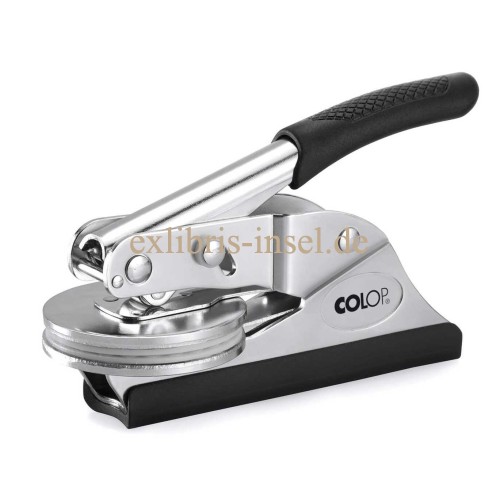 In our designs you can choose from -- 1. Embossing Press -- or 2. a stamp on typical stamp handle. The Embossing Press "Kampenello" is suitable for paper up to 120 g / m² and has a journal entry up to 45 mm -- from the margin to the center --. The price for the item includes the stamping clip, engraving and the embossing press.