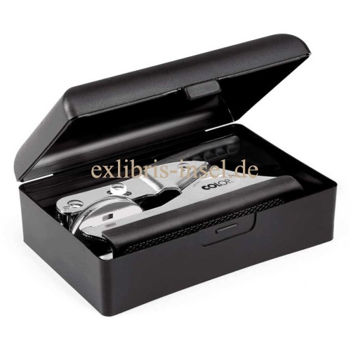 In our designs you can choose from -- 1. Embossing Press -- or 2. a stamp on typical stamp handle. The Embossing Press "Kampenello" is suitable for paper up to 120 g / m² and has a journal entry up to 45 mm -- from the margin to the center --. The price for the item includes the stamping clip, engraving and the embossing press.